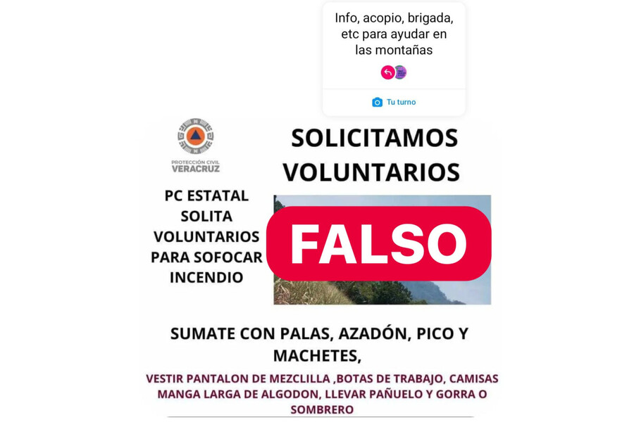 “Circulan falsas convocatorias para reclutar personas voluntarias para combatir los incendios. La Secretaría de Protección Civil no convoca personal voluntario, las brigadas son integradas por personal capacitado en combate a incendios forestales”, enfatizaron.