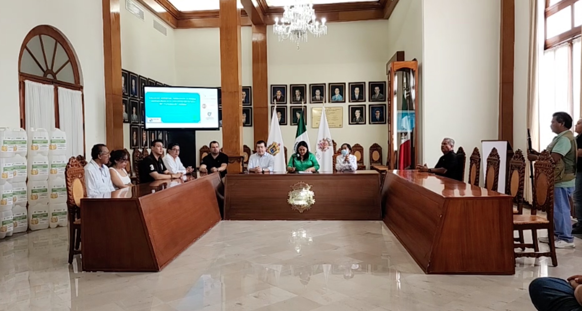 En un evento encabezado por la síndica única, Vania López Gonzalez y a través de la jefatura de Ecología y Medio Ambiente, las empresas participantes, recibieron bidones para recolección de aceite vegetal usado, el cual es aprovechado para generar otros productos, así como un reconocimiento por mostrar su interés en materia ambiental.