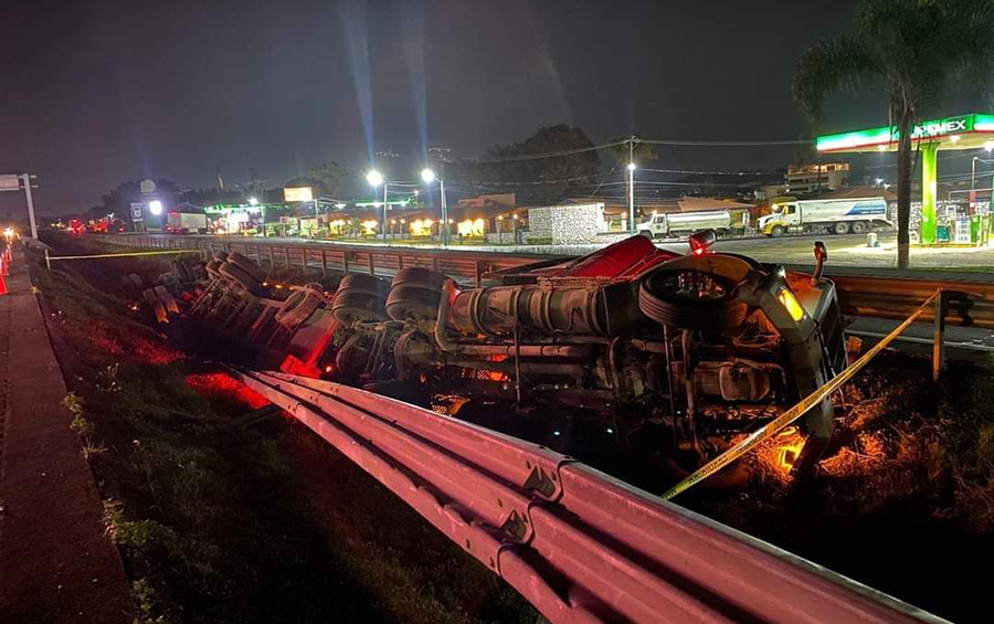 El camión cayó volcado sobre el acortamiento central y el incidente fue reportado al 074, siendo paramédicos de Caminos y Puentes Federales (Capufe) quienes acudieron al llamado.