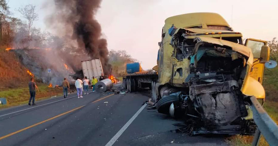 Naranjos, Ver. - Un choque entre dos tráileres dejó un saldo de un hombre muerto y otro lesionado de gravedad, en la carretera a Tampico, a la altura de la caseta de cobro.