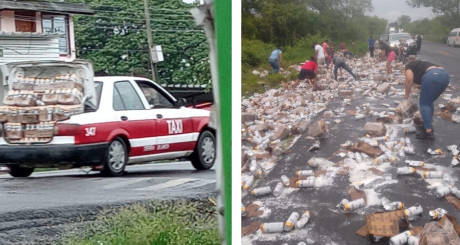 El operador resultó ileso y salió por una de las ventanillas, sin embargo, la mercancía quedó esparcida en la carretera, a donde acudieron decenas de personas para recogerla.