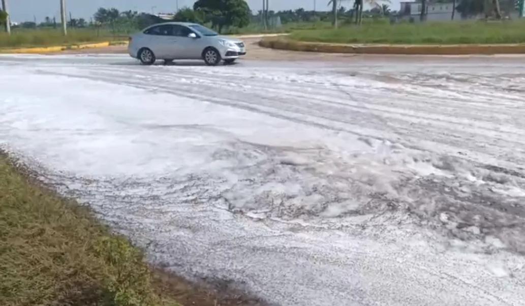 Habitantes de la comunidad de Villa Allende, en el municipio de Coatzacoalcos, Veracruz, se pusieron en alerta por la presencia de una densa capa de espuma blanca de extraña procedencia, la cual cubrió algunas calles del lugar.