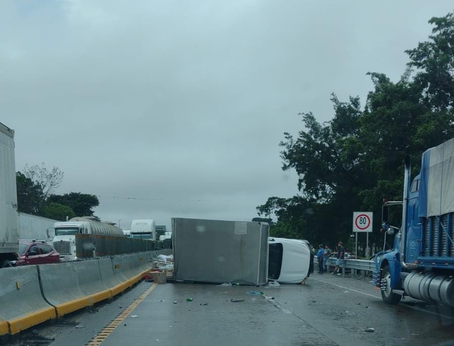 Córdoba. - La autopista Orizaba-Córdoba se encuentra cerrada en su totalidad a la altura del distribuidor vial El Diamante, debido a la volcadura de una camioneta.