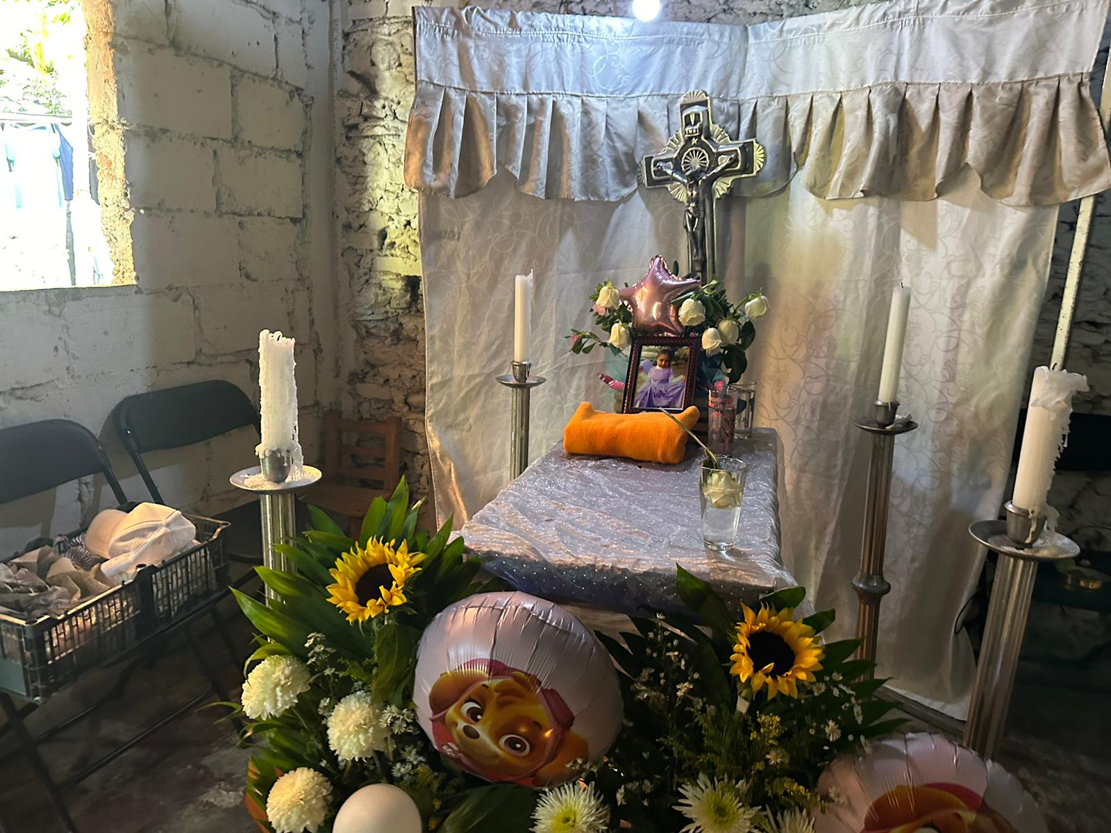 En una pequeña mesa adornada con dos globos con sus personajes favoritos, flores blancas y una fotografía de Natalia cuando cumplió tres años, son parte del altar donde la menor es recordada y hasta donde decenas de personas llegan a darle el pésame a los familiares.