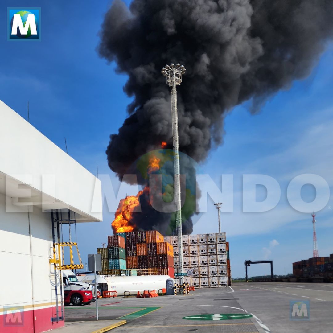 Veracruz. - Varios contenedores se incendiaron hoy por la tarde, en el Internacional de Contenedores Asociados de Veracruz (ICAVE), lo que generó la movilización de corporaciones de rescate, quienes hasta el momento tienen el registro de una persona lesionada.
