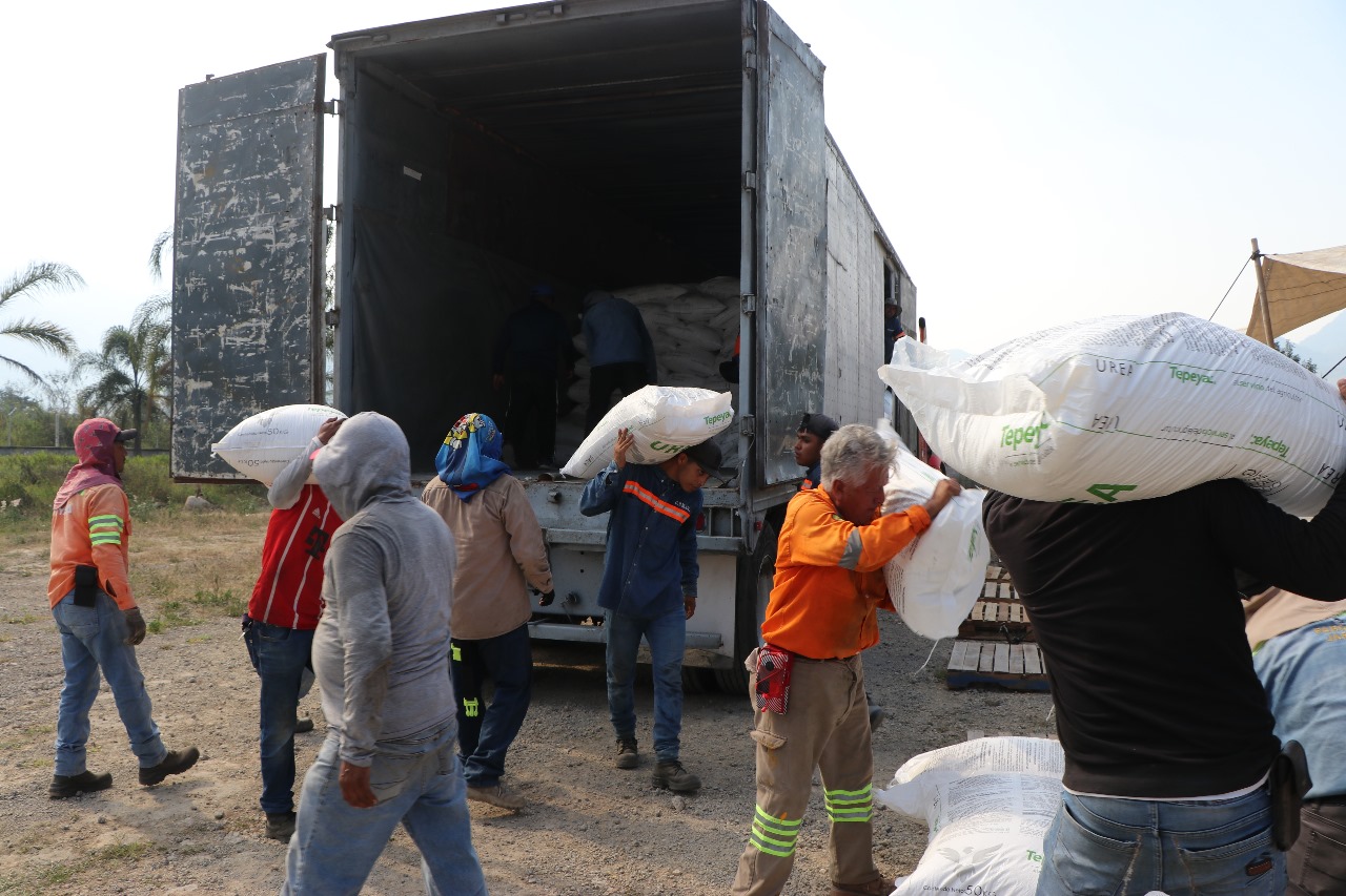 Fueron un total de 70 toneladas de abono y fertilizante, entregadas a 213 beneficiarios de la comunidad de Tuxpanguillo y otras 70 toneladas más para la comunidad de Campo Grande, teniendo como sede el Centro de Apoyo de Insumos Agropecuarios (TIAMI).