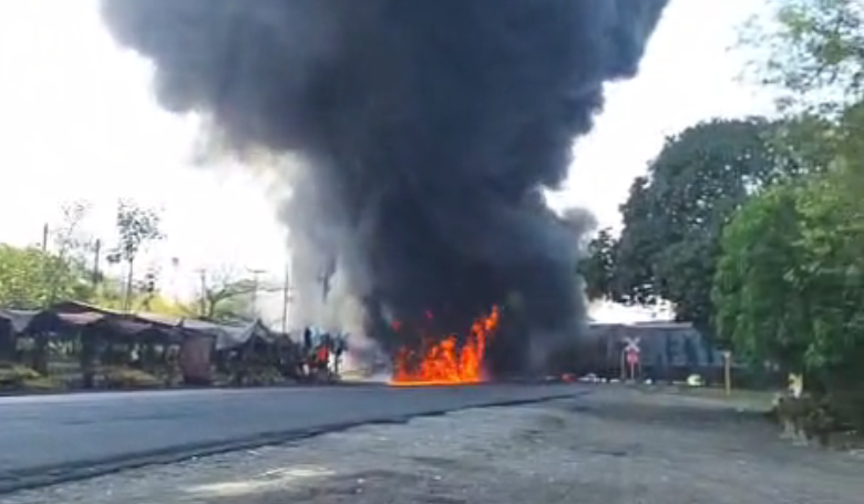 Trascendió que el chofer intentó ganarle al paso al tren, sin embargo, en la maniobra la pipa fue embestida por la máquina y posteriormente se incendió.