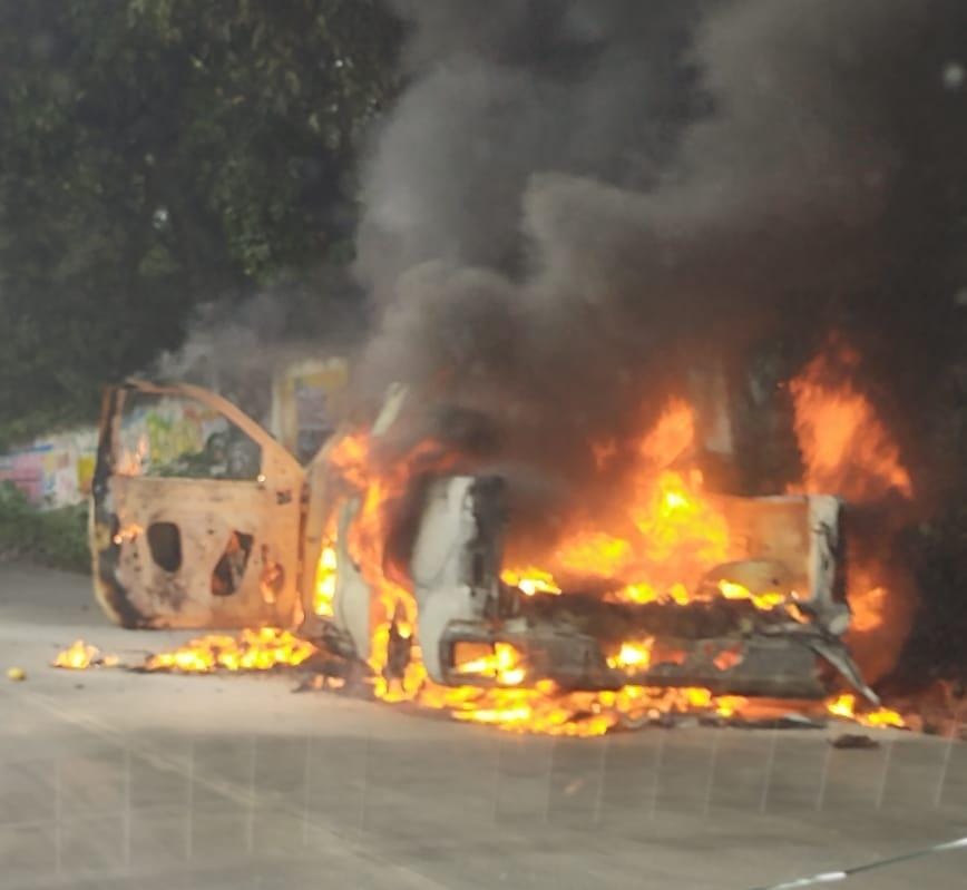 El tráfico quedó detenido en ambos sentidos, y aunque varios conductores intentaron extinguir las llamas, no pudieron controlarlas.