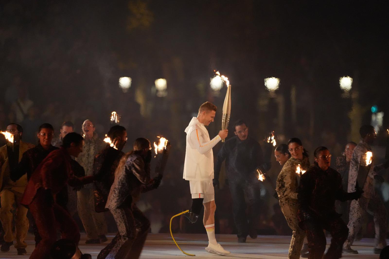 El medallista germano llevó la flama dentro del Jardín de las Tullerías en donde se encuentra el pebetero, seguido de decena de artistas con antorchas.