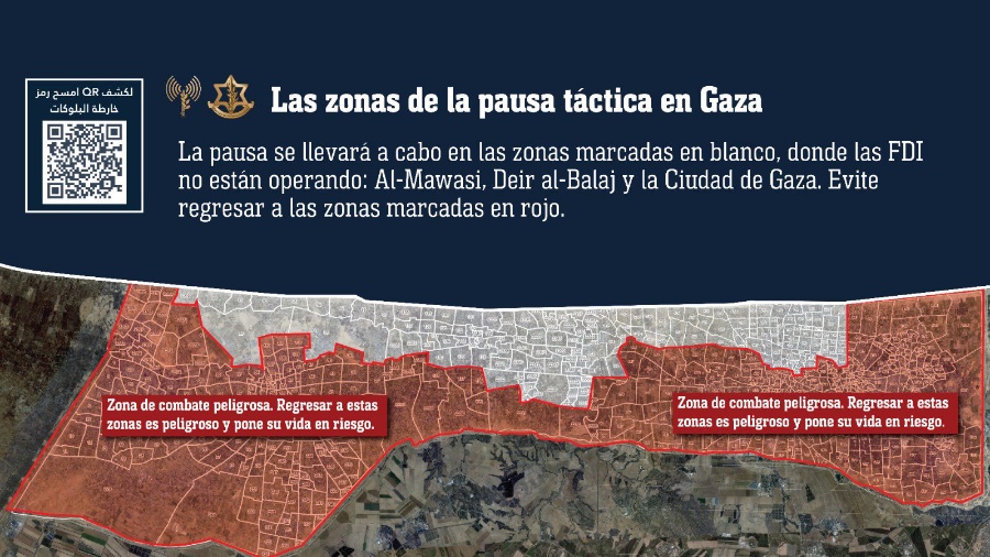 La pausa se llevará a cabo diariamente de 10:00 a 20:00 en las zonas de Al-Mawasi, Deir al-Balaj y la ciudad de Gaza, donde no se están realizando operaciones militares, y se mantendrá hasta nuevo aviso.