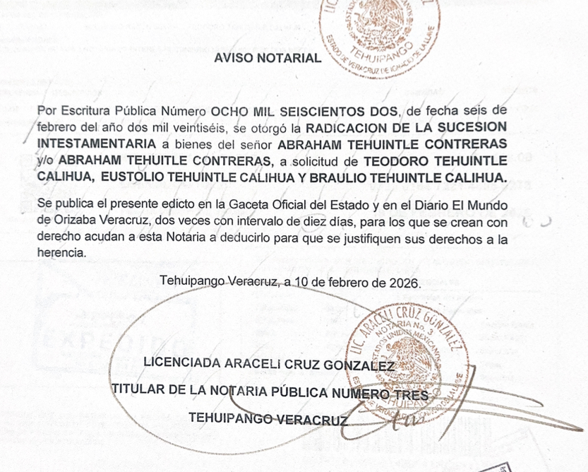 Aviso Notarial Abraham Tehuintle Contreras