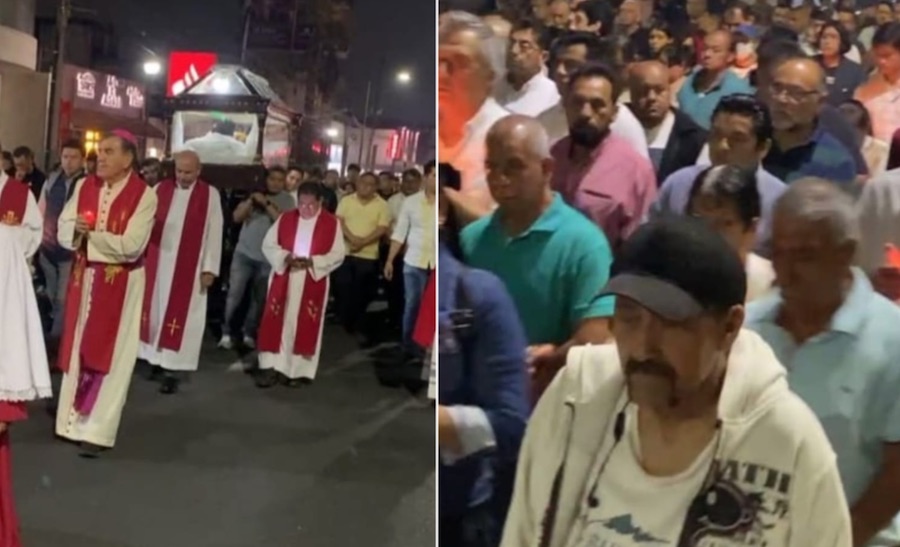 Durante el trayecto, varios varones se turnaron para cargar el féretro con el cuerpo de Jesús.