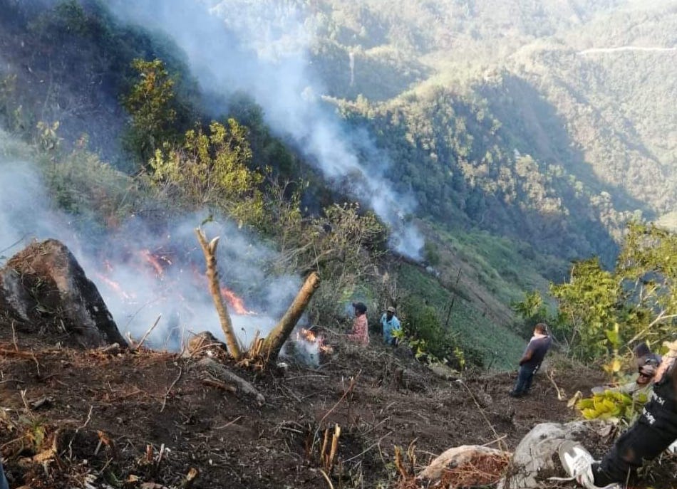Con preocupación vieron que el incendio cruzó la brecha que habían trabajado y se sigue extendiendo amenazando cultivos de maíz, café y caña, pero además temen que se acerque el fuego a la zona donde hay poblados.