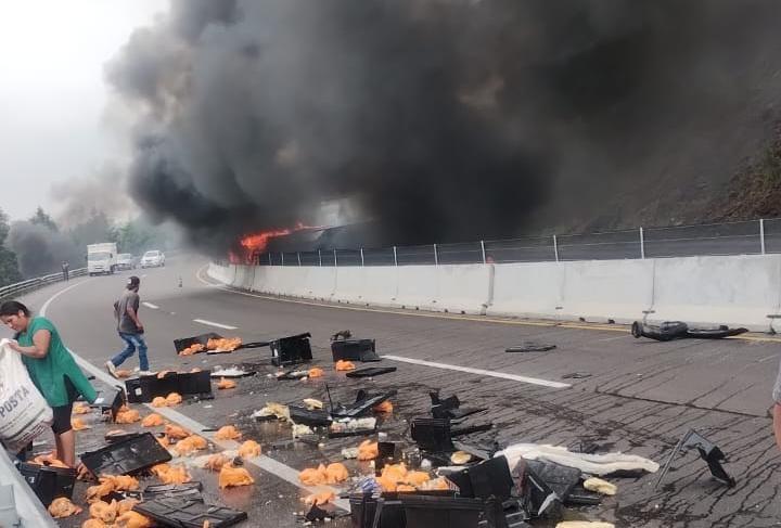 A pesar de la magnitud del siniestro y de las llamas aún activas, lugareños llegaron al lugar del accidente para realizar actos de rapiña. Imágenes que circulan en redes sociales muestran a personas saqueando el contenedor y llevándose pollos que quedaron esparcidos alrededor del lugar.