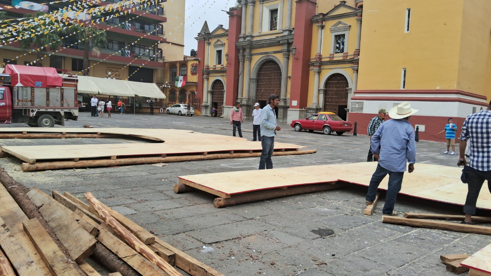 El sacerdote dio a conocer que están considerando cinco días para llevar a cabo la edificación de los tres arcos que adornarán la fachada de la Catedral. Iniciaron este lunes 16 de septiembre y se culminará el día viernes.