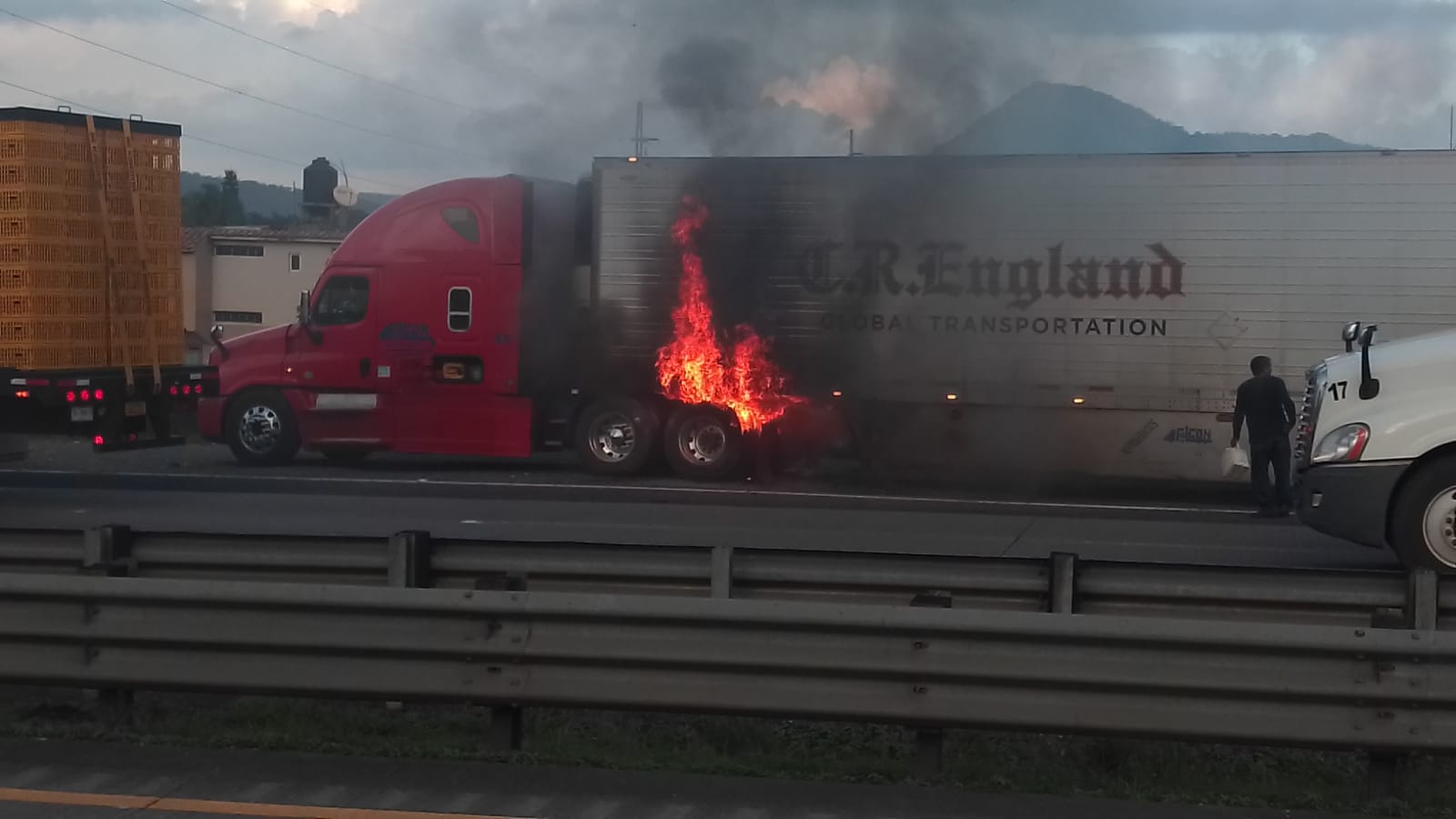 Ixtaczoquitlán. - Un tráiler se incendió hoy por la tarde, en la autopista Córdoba-Orizaba, a la altura del Trébol de Ixtaczoquitlán.