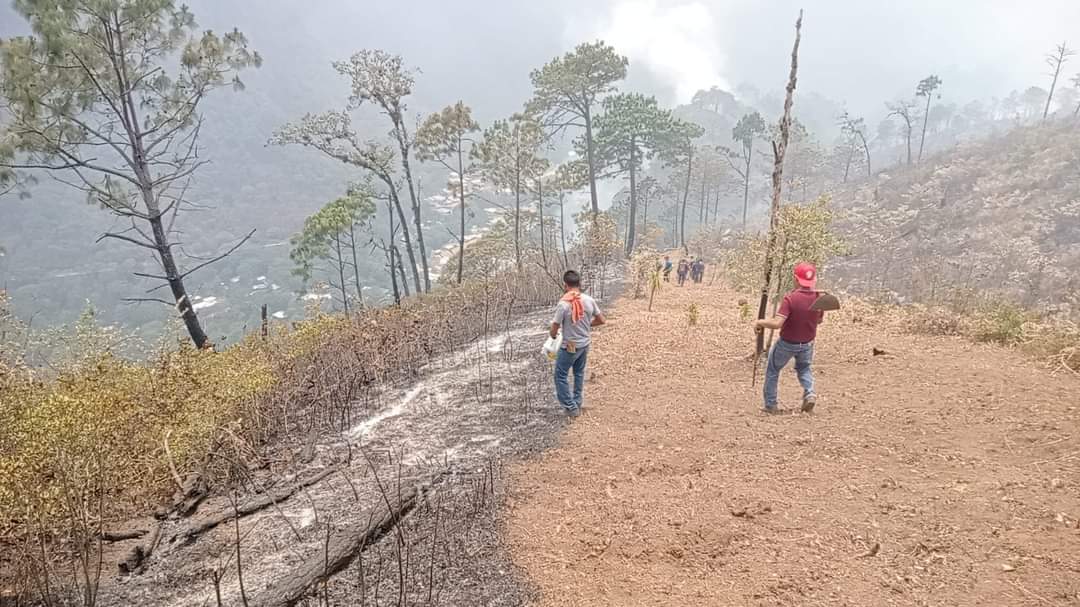 Brigadistas voluntarios y de dependencias oficiales mantiene el combarte del incendio en el cerro de "Tlahuitompa" en el municipio de San Andrés Tenejapan que comenzó desde este martes.