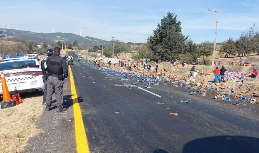 Maltrata.- Un camión cargado con varias toneladas de cerveza volcó hoy por la mañana en la autopista Orizaba-Puebla, a la altura de las cumbres.