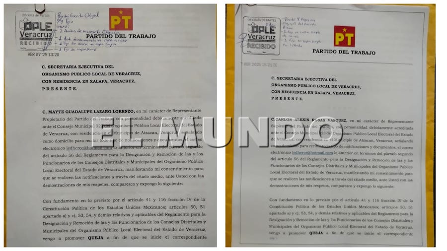 La imparcialidad del proceso electoral en Atzacan está siendo puesta en tela de juicio. Representantes del Partido del Trabajo (PT) presentaron una solicitud formal ante la Secretaría Ejecutiva del Organismo Público Local Electoral (OPLE) en Xalapa para exigir la remoción de dos funcionarios clave del Consejo Municipal: la vocal presidenta, Elizabeth Teresa Molina Romero, y el vocal de Organización, José Aldahir Naranjo Solano.