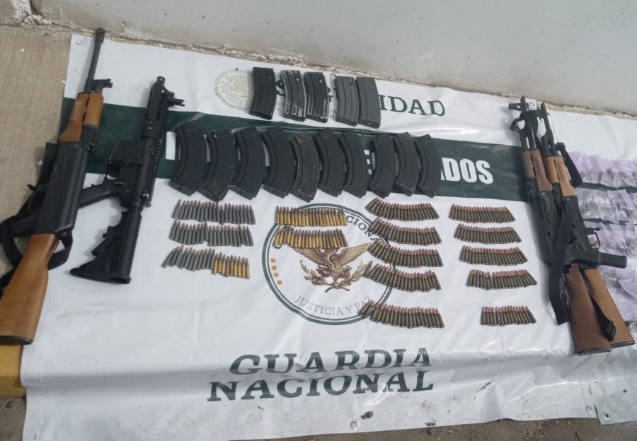 La Guardia Nacional, en coordinación con elementos del Ejército Mexicano, detuvieron a una persona y aseguraron fusiles de asalto, cargadores, cartuchos útiles y dosis de posible marihuana, así como tres vehículos, en el estado de Sonora.