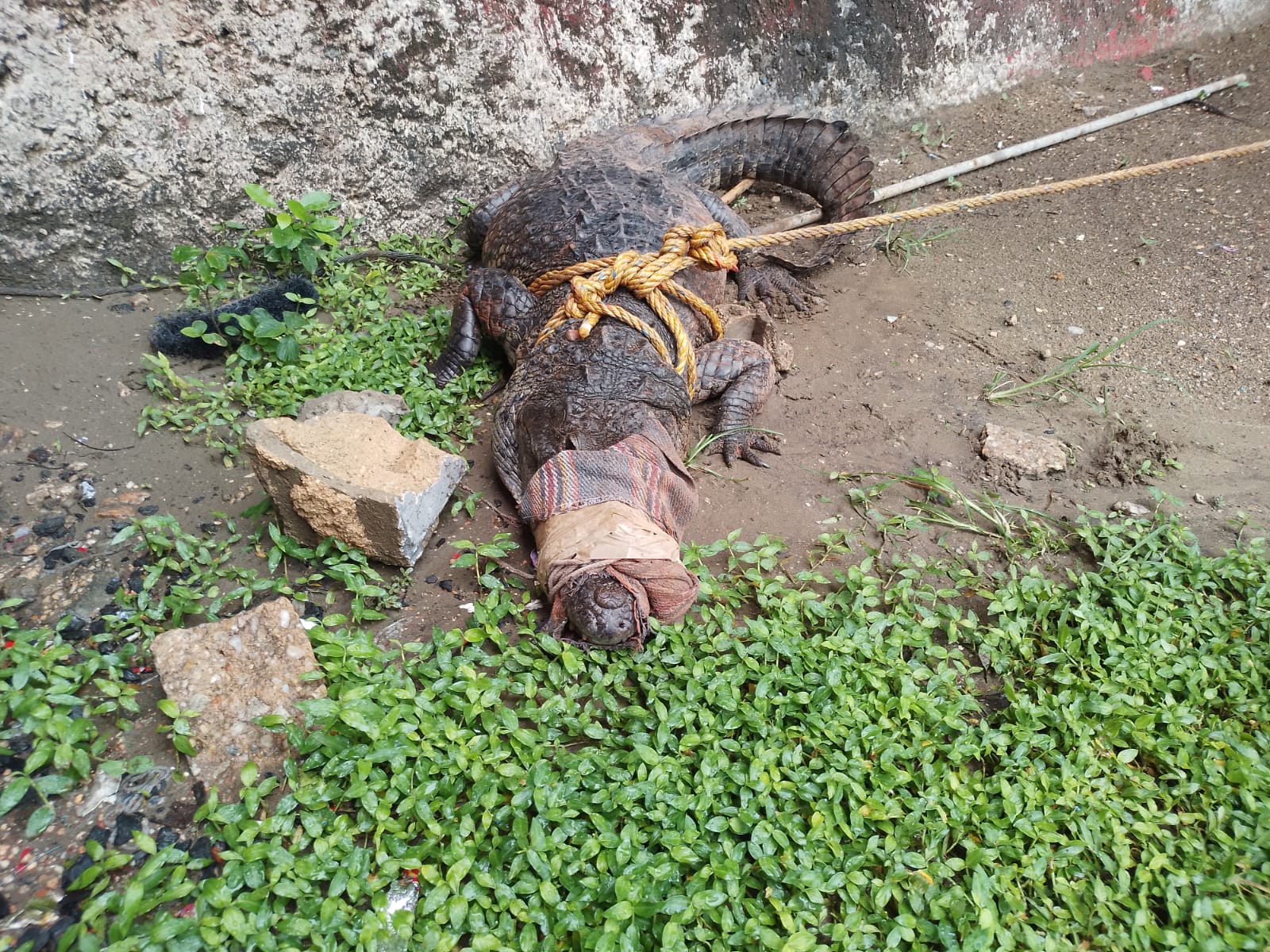 Según las indagatorias, la mujer escuchó un ruido en el patio, y cuando se asomó se percató del cocodrilo, por lo que corrió a resguardar a sus hijos, y los tres encerraron en el baño.