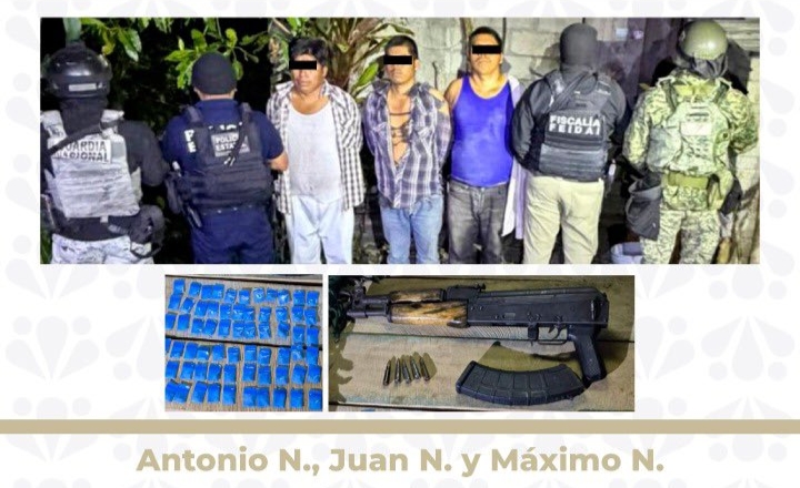 El operativo, realizado en coordinación con la Secretaría de la Defensa Nacional, la Guardia Nacional y la Policía Estatal, se llevó a cabo en un inmueble de la localidad de Francisco I. Madero, donde fueron detenidos Juan N., Antonio N. y Máximo N., presuntos integrantes de la banda conocida como “Los Rey”.