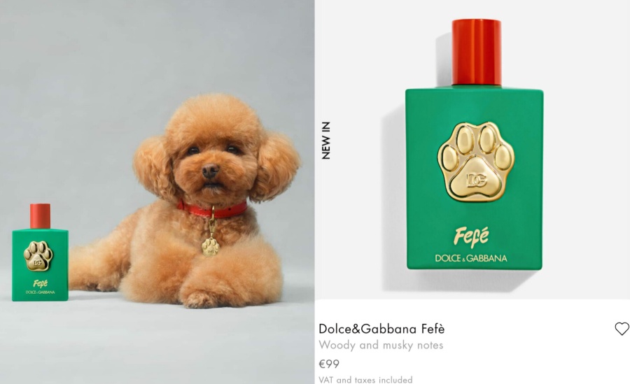 Dolce & Gabbana hizo oficial el lanzamiento de Fefé, una nueva fragancia para perros, elaborada sin alcohol con una mezcla de ylang ylang, almizcle y sándalo.