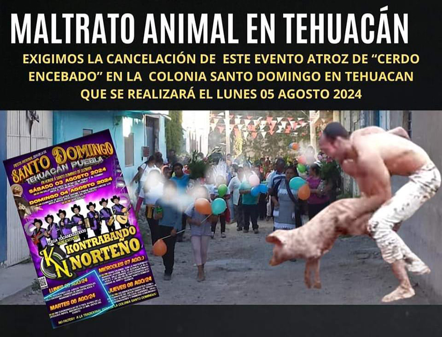 La asociación Tac Una Protección al Entorno, denunció y exigió la cancelación del evento denominado el "marranito encebado", actividad que se pretende hacer durante la fiesta patronal de la colonia Santo Domingo, la cual se llevará a cabo este lunes 5 de agosto, por lo que pidieron sea la autoridad del Estado quien intervenga en este tipo de actividades que son catalogadas como crueldad animal.