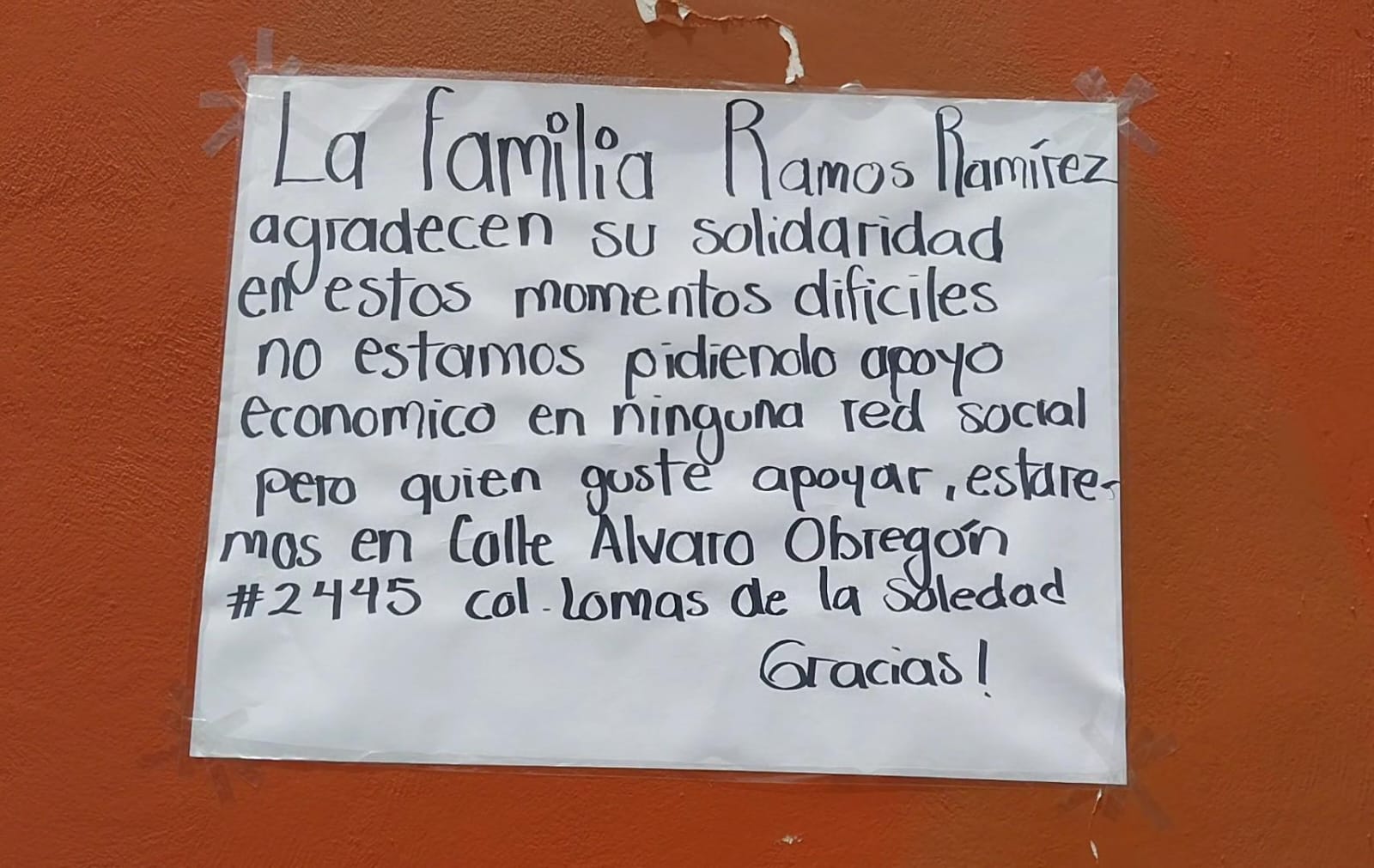 Dijo que por ahora el cuerpo de Sebastián permanece en el anfiteatro de Tehuacán y sus padres se trasladaron a la ciudad de Puebla, por lo tanto no tienen planeado solicitar el apoyo económico, eso lo decidirán los padres y si hay quien quisiera darlo, pueden hacerlo de manera directa en calle Álvaro Obregón #2445, colonia Lomas de la Soledad, con la señora Carmen Ramírez Hernández, mamá de Sebastián o su abuelita Sabina Hernández.