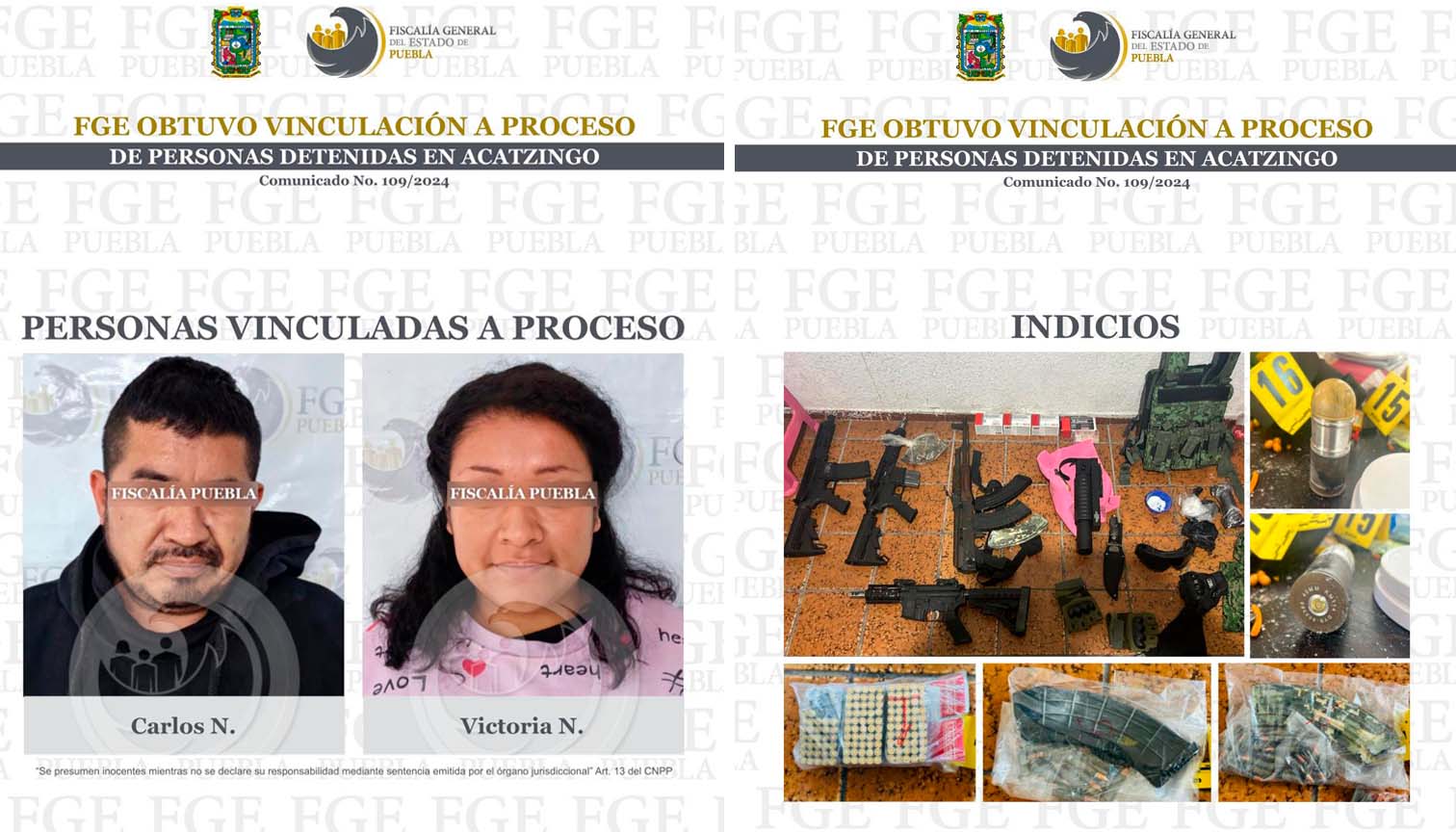 Carlos “N” de 45 años y Victoria “N” de 24 años, fueron vinculados a proceso por el delito de homicidio simple intencional, tras ser detenidos durante un cateo en Acatzingo.
