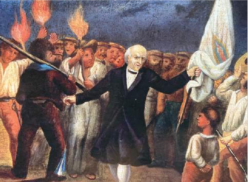 Ordena al sacristán José Galván, cerrar las puertas de la parroquia y tocar el esquilón o campana a rebato, lo que alarma al resto de la población que acude presurosa a la plaza donde en lugar de oír Misa lo que oyen es una patriótica arenga del padre Hidalgo, gran orador y con gran carisma y afectos dentro de la feligresía, por lo que al grito de: