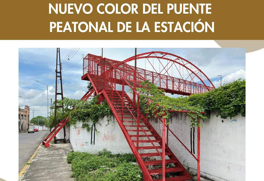 Como resultado de una consulta ciudadana realizada en redes sociales, el ayuntamiento de Córdoba, anunció que, el puente peatonal de hierro del barrio de La Estación será pintado de color rojo, al ser el tono más seleccionado, con 2 mil 992 reacciones.