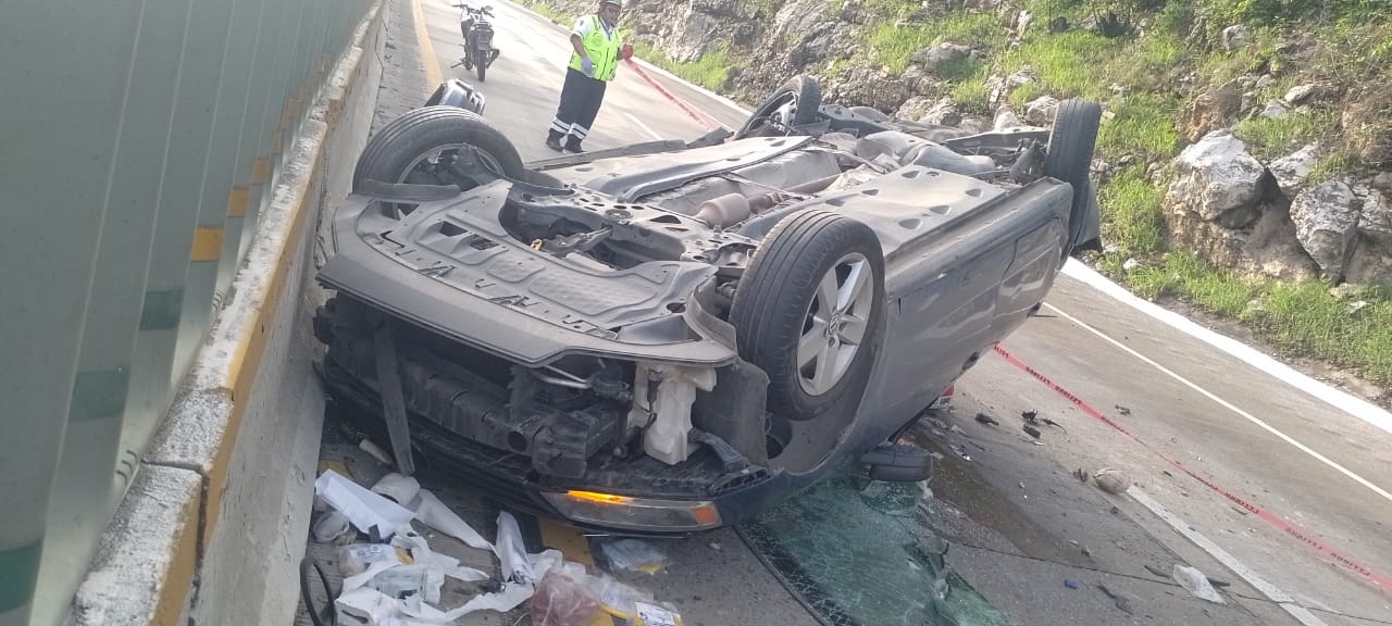 Cuitláhuac. - Un automóvil volcó hoy por la tarde, en la autopista Córdoba-Veracruz, a la altura de la comunidad El Nanche.
