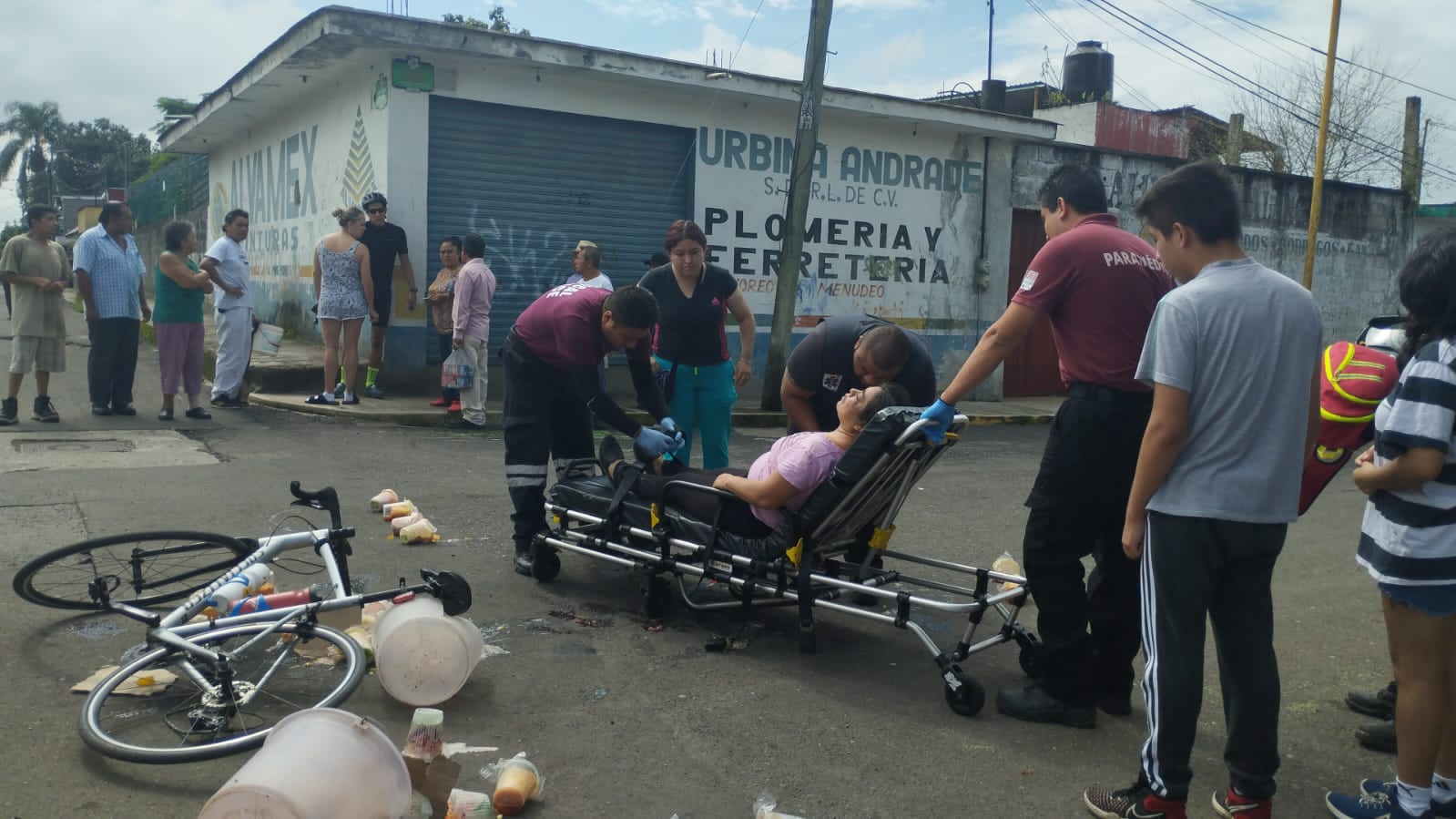 Antes de llegar a la calle 8, una mujer intentó cruzar la calle y no se percató del vendedor, quien no pudo detenerse a tiempo y embistió al ama de casa.