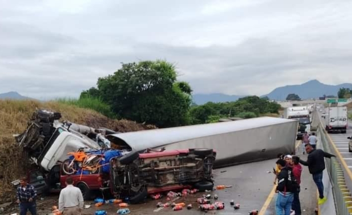 Amatlán. - Un choque múltiple entre un tráiler y otros 4 vehículos se registró hoy por la mañana en la autopista Córdoba-Veracruz, a la altura del Trébol de Amatlán.
