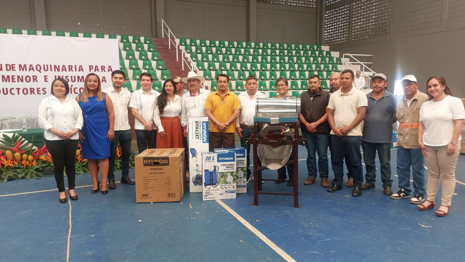 El presidente municipal Gerardo Rosales Victoria y la sub secretaría de Desarrollo Agrícola, Patricia Córdoba Carvallo encabezaron la entrega de herramientas tales como: molino de nixtamal, morteadora, molino de café, trituradora de fruta, biofungicida, malla sombra, frijol Jamapa, semillas de legumbres y verduras, bomba mochila, desmalezadora, fumigadora, motobomba, báscula, desgranadora, despulpadora, hidrolavadora, entre otras.