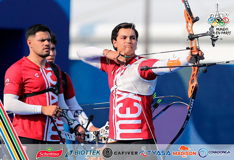 El conjunto varonil de tiro con arco integrado por Matías Grande, Carlos Rojas y Bruno Martínez disputaron este lunes la ronda de octavos de final en la explanada de Los Inválidos en los Juegos Olímpicos de París 2024.