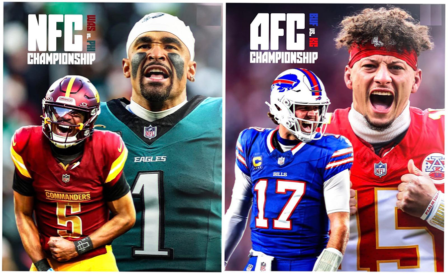 Los Commanders de Washington vs. Águilas de Filadelfia en la Nacional y los Bills de Búfalo vs. Los Jefes de Kansas City en la Americana son los juegos de campeonato de conferencia que se pactaron este fin de semana rumbo al Super Bowl LIX.