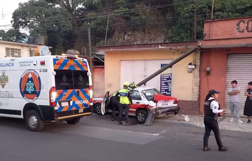 Orizaba.- Un taxi se estrelló contra un poste luego de ser embestido por otro vehículo, en la Poniente 7, entre las calles Sur 20 y 22.