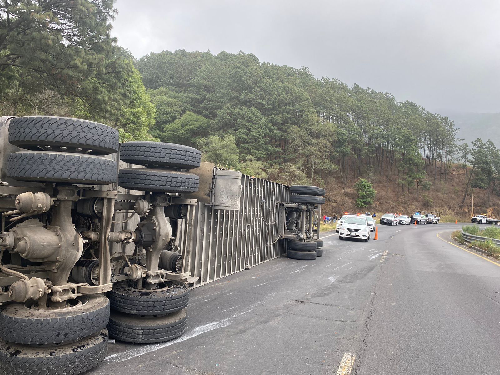 La unidad transportaba aceite que tenía como destino la ciudad de Puebla, sin embargo, a la altura del primer retorno, el operador perdió el control y terminó por volcar.