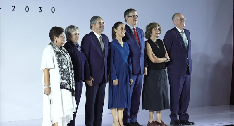 La presidente electa de México, Claudía Sheinbaum, presentó este jueves a seis integrantes de su gabinete presidencial, entre ellos, Marcelo Ebrard como Secretario de Economía, en el Museo Interactivo de Economía de la Ciudad de México.