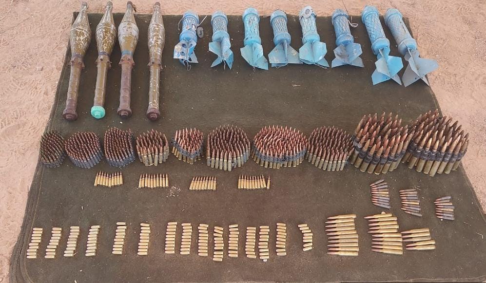 Elementos de la Guardia Nacional, en coordinación con el Ejército Mexicano, aseguraron granadas para lanzacohetes RPG, artefactos explosivos improvisados para ser arrojados con drones y cartuchos útiles de diversos calibres, en Sonora.