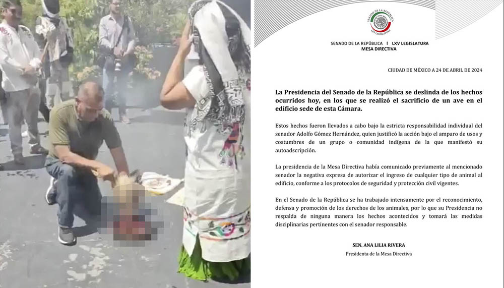 Las imágenes del sacrificio de una gallina en el Senado de la República, como ofrenda por el Día de la Lluvia, se volvieron tendencia en redes sociales, desatando una fuerte polémica. El evento fue organizado por el senador de Morena, Adolfo Gómez Hernández en la terraza del Piso 2 de la sede legislativa.