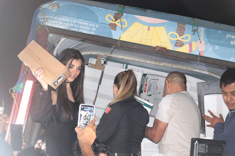 "He venido a entregar estos apoyos, déjenme entregarles y luego nos tomaremos fotos", dijo la joven creadora de contenido para adultos, ante gritos de euforia de sus seguidores.