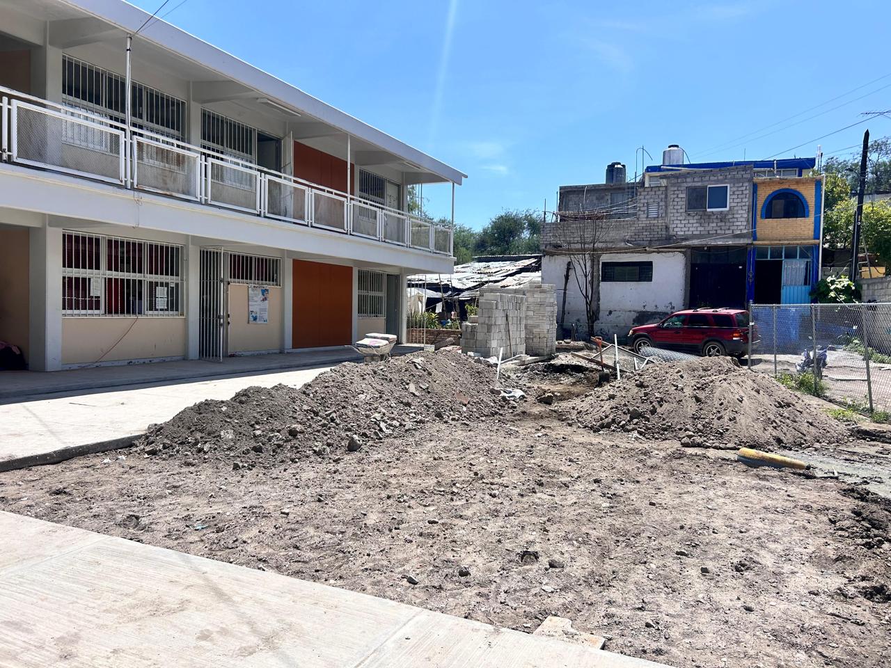 La directora del bachillerato Pablo Neruda, Miriam Dionisio, mencionó que el alcalde se comprometió a construir dos aulas en ese plantel educativo, pero para ello tenían que derribar dos módulos de baños y un aula improvisada, después de que realizaron los trabajos empezaron a recibir el material para la construcción.