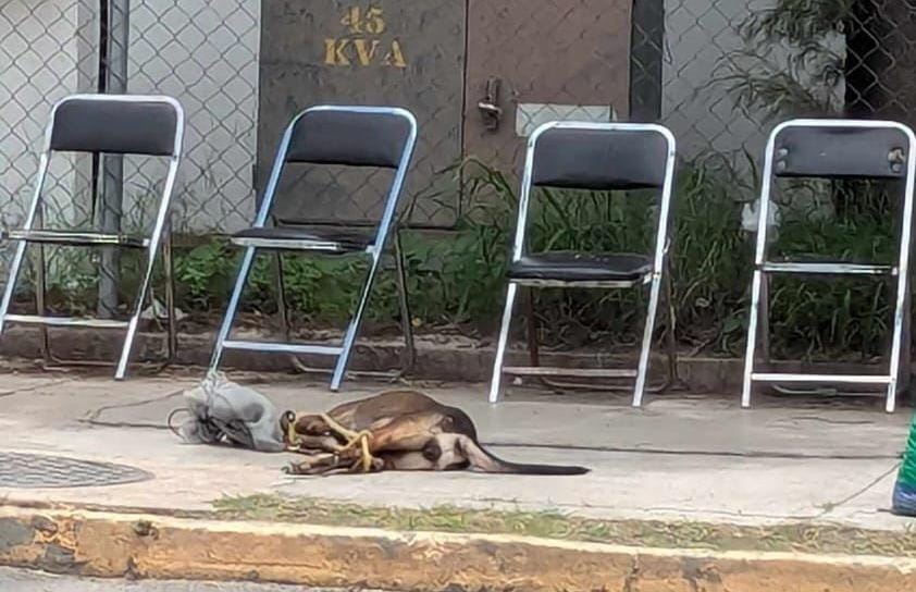 Patricia Aguilar Delgado, presidenta de dicha asociación, comentó que las fotos se las hizo llegar un usuario, asimismo le dieron a conocer que se realizó una jornada de vacunación y es que en las fotografías se observan diferentes sillas, en donde aparentemente se encontraban las personas esperando su turno, pero para el momento en que se tomaron las fotos ya no había nadie más que el perro en esas condiciones.