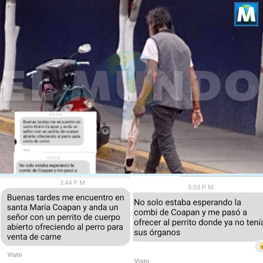 A decir de la asociación Tac Una Protección al Entorno, después de que han dado atención a los casos de crueldad animal en Santa María Coapan, este día les fue denunciado la presencia de un hombre que circulaba sobre la avenida Nacional que ofrecía a un perrito para carne de consumo, su cuerpo estaba abierto, desollado y sin órganos.