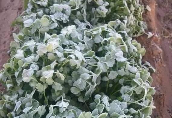 En cuanto al cilantro, señaló que con el frío las hojas se queman y ya no tienen en el mismo sabor, además de que a la vista del cliente, ya no es atractivo, por ello lo declaran como perdida.